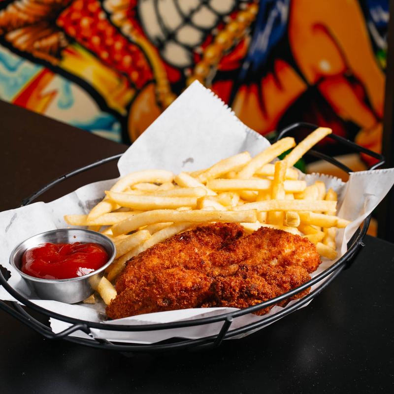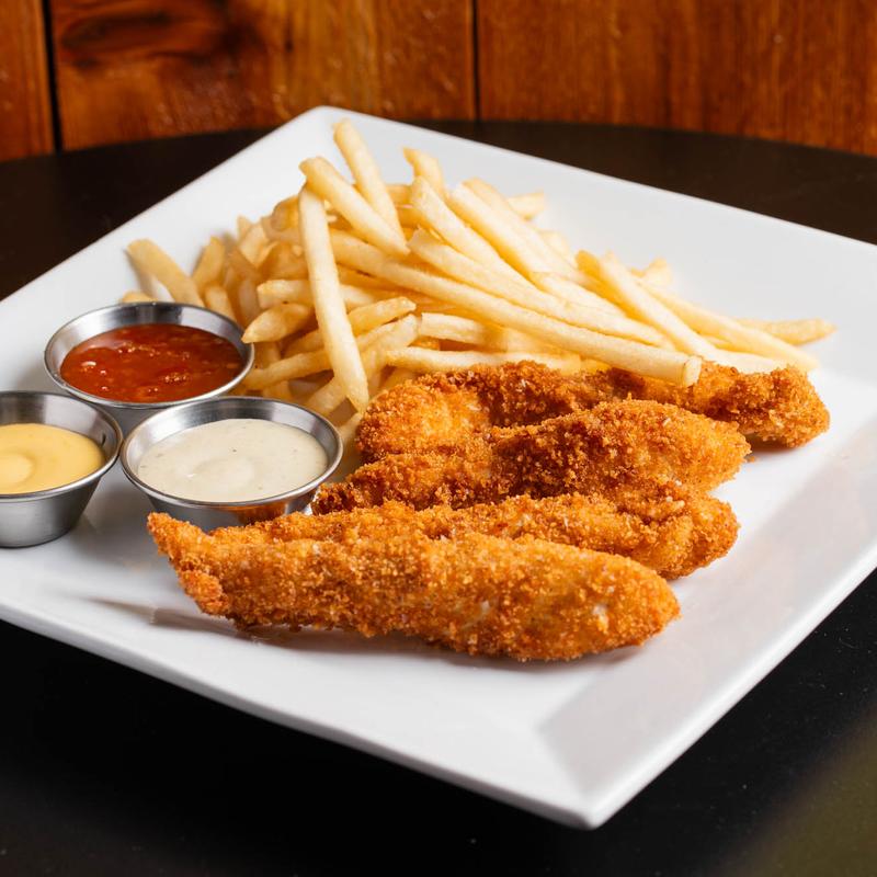 4 Panko coated chicken tenders served with a trio of sauces - Honey mustard, jalapeno ranch & sweet chili served with fries.